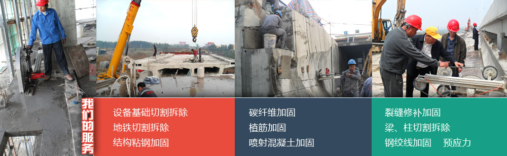 擁有自行研發(fā)生產(chǎn)的專業(yè)性混凝土切割機設(shè)備:液壓繩鋸機8臺、液壓墻鋸機4臺、液壓鉆孔機10臺,電動鉆孔機20臺